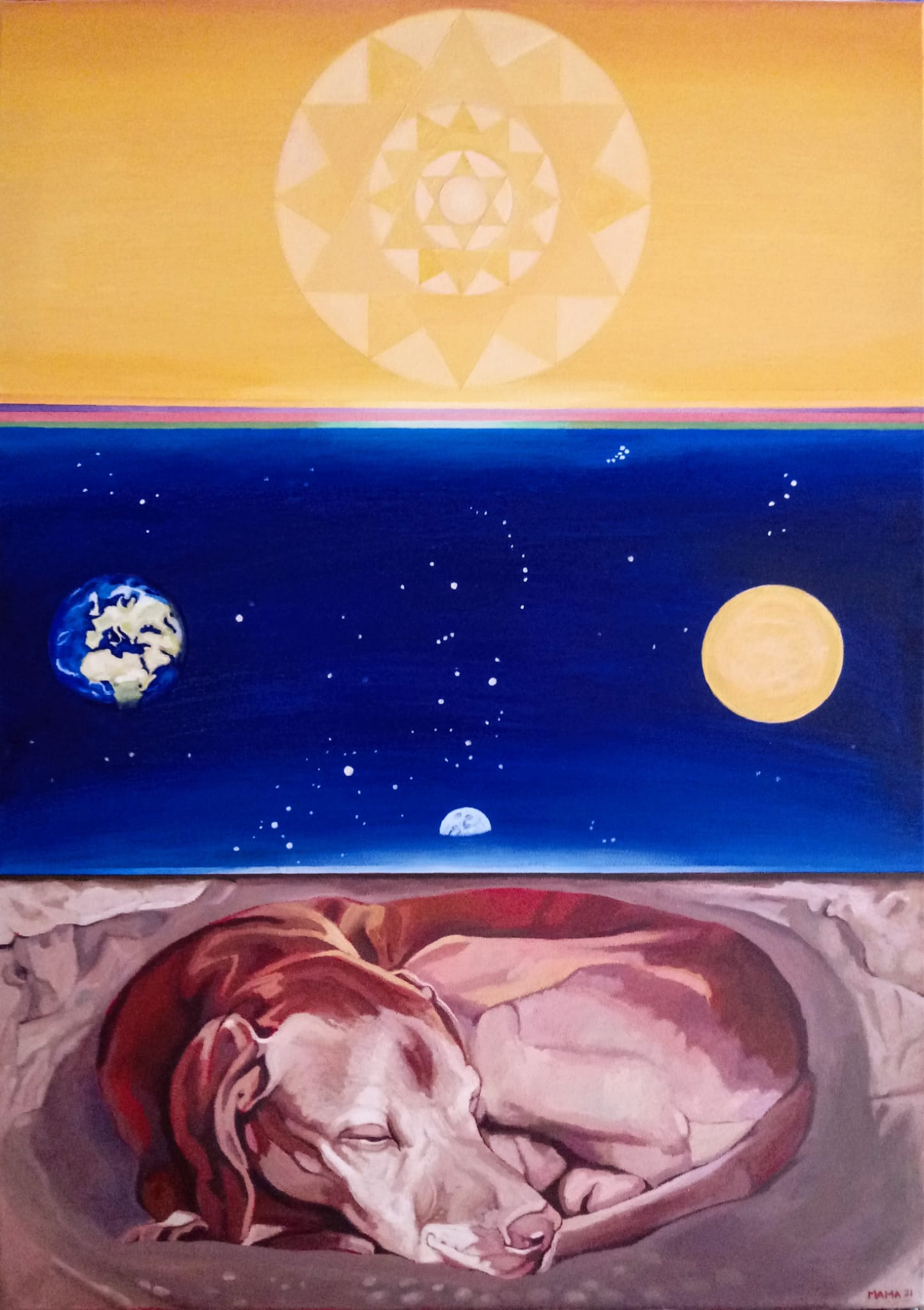 Massimiliano MarcheseDissotterrare il cane da caccia o veltroAcrilico su tela, 50 x 70 cm2021 Facebook: Massimiliano Marchese